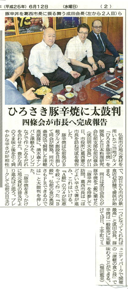 ▼平成25年6月12日 陸奥新報(ひろさき豚辛焼)