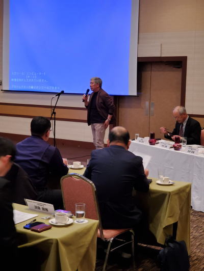 ▼津軽藩ねぷた村(弘前市)にて Zoomで講義した中村元彦会長 ![]() |