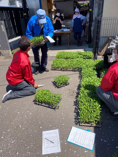 | 2020年6月10日更新 清水森ナンバブランド確立研究会より 5月29日、ポット苗の配布後に希望者と新規入会会員を対象とした定植研修会を行いました。中南地域県民局地域農林水産部農業普及振興室 齋藤室長さん、髙田副室長さん、清水森ナンバ担当 主幹 長谷川修さん、弘前大学生命科学部の先生方、コロナで自粛中の会員各位が参加。当会の中田嘉博副会長の圃場で行いました。 ※新型コロナウイルス感染予防の観点から、今回は規模を縮小しての開催となりました。 |