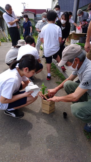 | 2020年7月13日更新 清水森ナンバブランド確立研究会より <参加メンバー> ◇弘前大学より 前田智雄 教授(トウガラシ博士) 本多和茂 准教授 教育学部 勝川健三 准教授 吉仲 怜 助教 弘前大学農学生命科学部の学生さん20名(応援で) ◇在来津軽「清水森ナンバ」ブランド確立研究会より 中村元彦 会長 中田嘉博 副会長 前田正明会員(普及センターOB) 佐藤俊治会員(まんぷく農家メシや定禅寺じゃべり亭などに出演) 他 <鉢植え体験> 第二中学校一年生135名(担当:小林司先生) 第二中学校の鉢植え体験は2011年からスタートして今年で10回目。新型コロナウイルスの状況を考慮し、消毒やマスクの着用はもちろん、参加メンバー全員に検温を実施して鉢植え体験をスタートいたしました。 梅雨時期の合間、非常によいお天気となりましたので今年は校庭で実施。たくさんの取材の方々もお見えになっていました。参加した生徒さんたちからは元気な質問をたくさんいただき、今年も無事に終了。各自持ち帰った鉢植えに実がなるのが楽しみです。 |